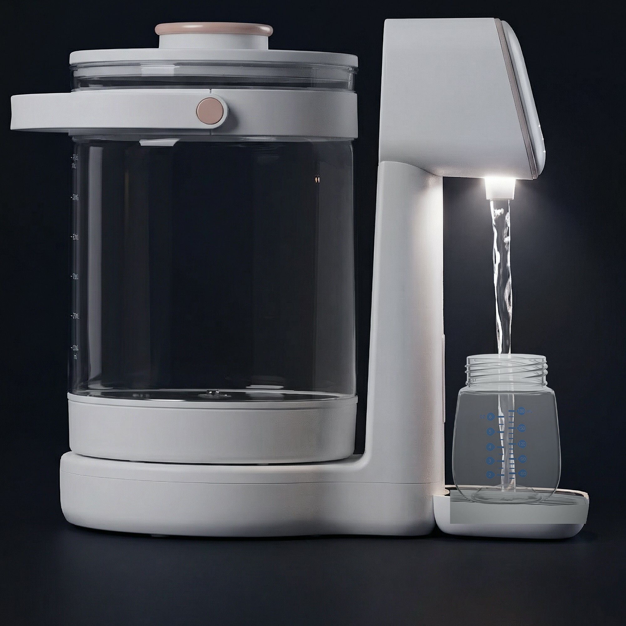 Datorita modului Smart, apa este incalzita automat la 100°C pentru eliminarea clorului, iar rezervorul generos de 3 litri reduce frecventa reumplerilor. Panoul iluminat, functia de memorare si dozarea exacta permit pregatirea rapida a biberonului chiar si pe timpul noptii.