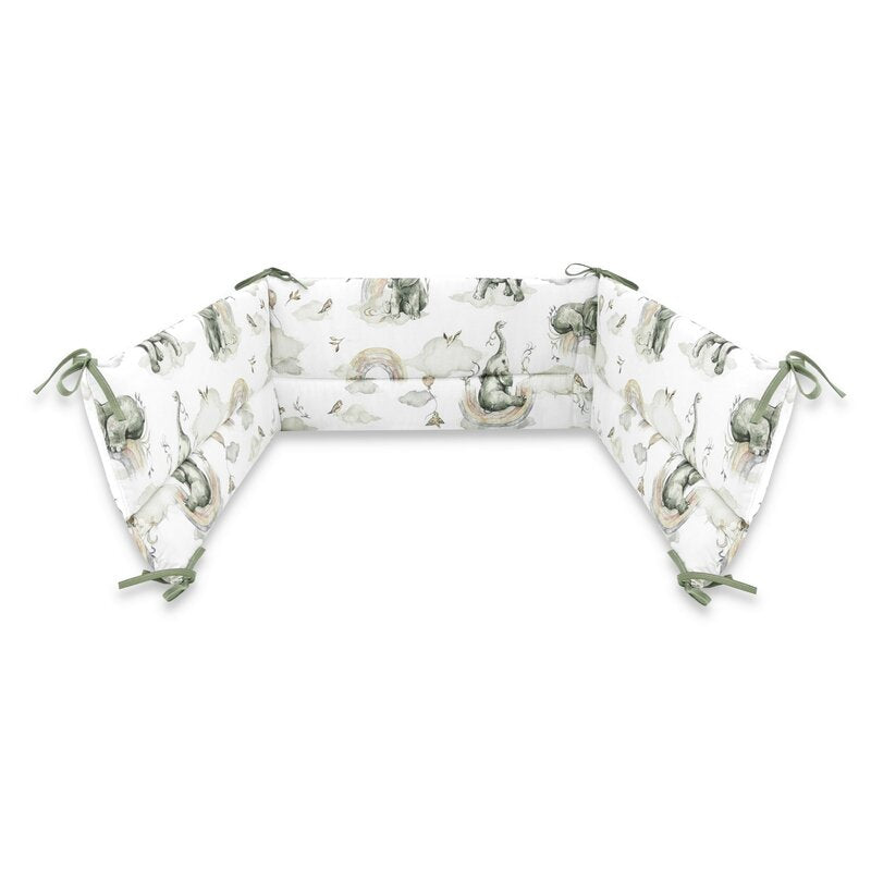 Aparatoare pentru patut, Qmini, Din bumbac certificat Oeko Tex Standard 100, 180x30 cm, Cu panglici, Elephants on Rainbow