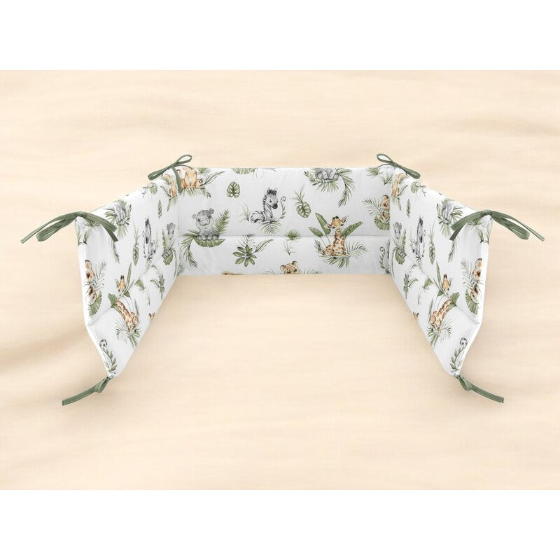 Aparatoare pentru patut, Qmini, Din bumbac certificat Oeko Tex Standard 100, 210X30 cm, Cu panglici, Safari