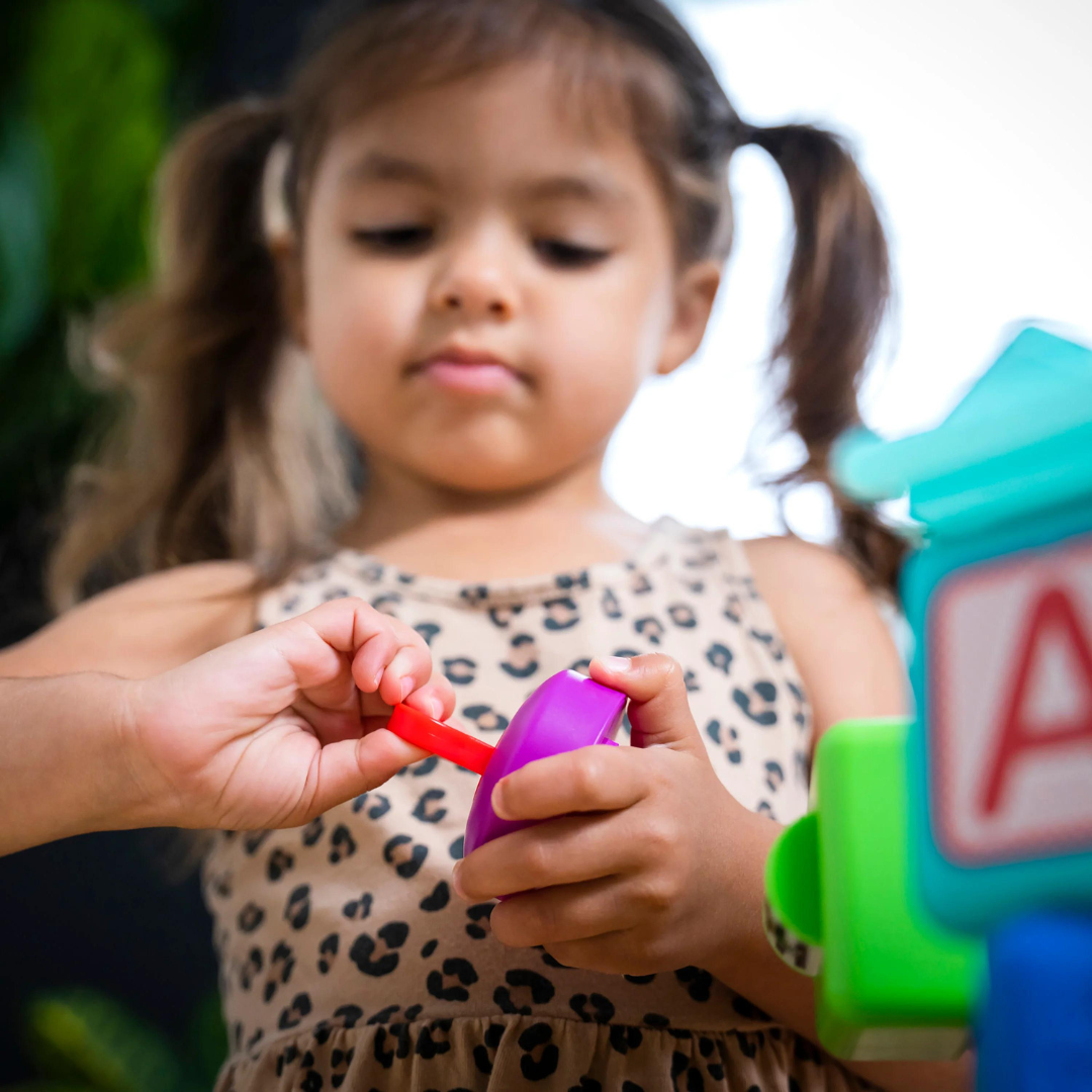 Stimularea abilitatilor STEAM: Setul consolideaza abilitatile STEAM ale copiilor mai mari prin activitati creative de design si inginerie. Include 5 blocuri cu litere, 6 atasamente senzoriale, 2 acoperisuri, un horn si un pod.