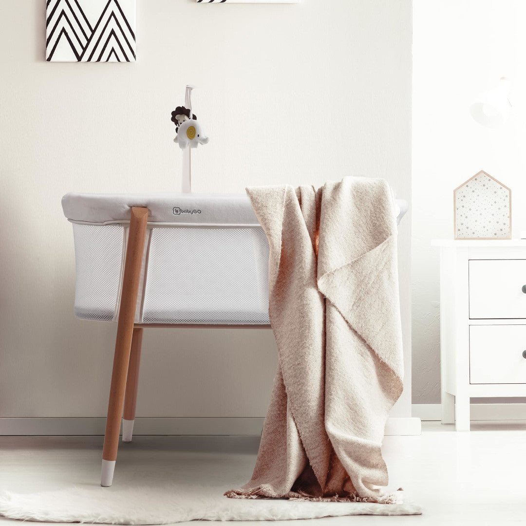 BabyGo - Patut cu cadru din Lemn si Bara de Jucarii Sleepgood Mesh