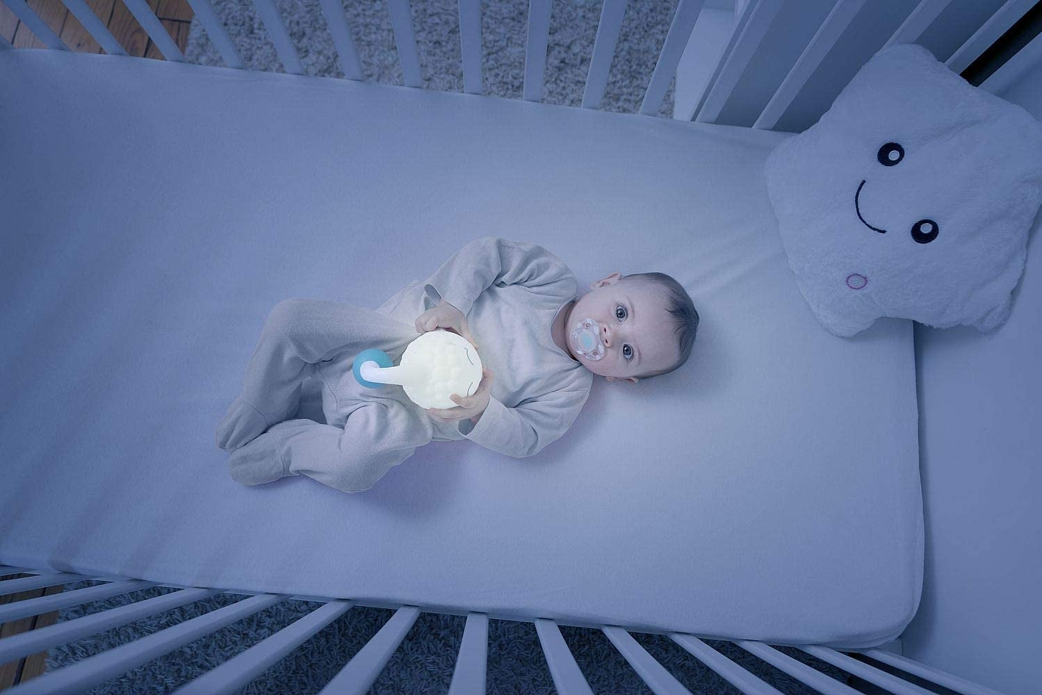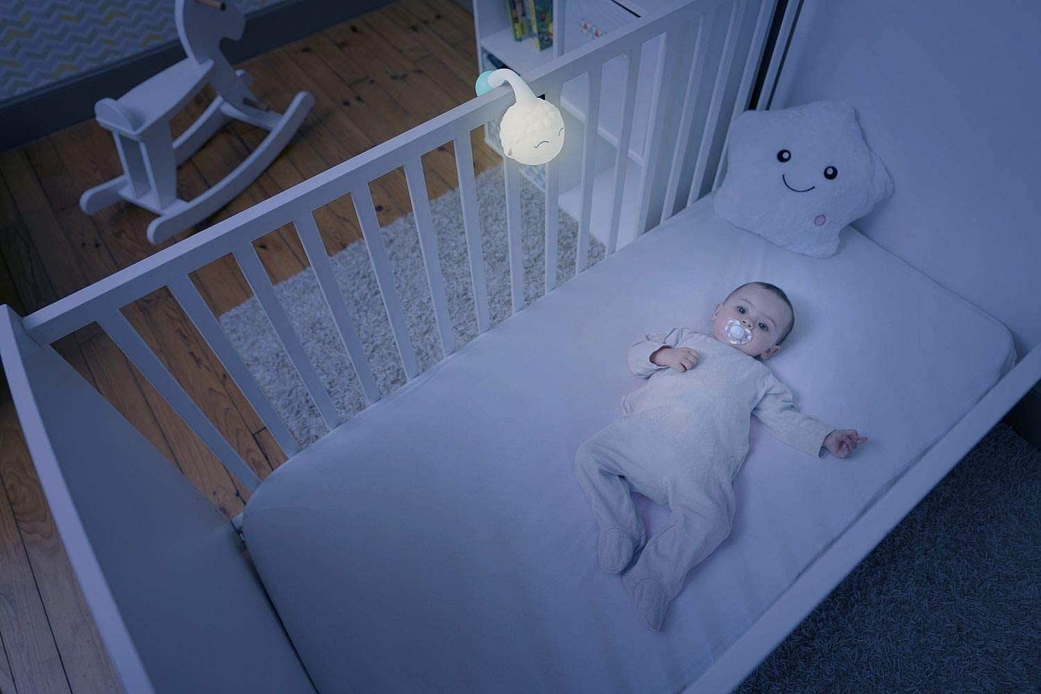 Lampa poate fi usor atasata la patutul micutului.