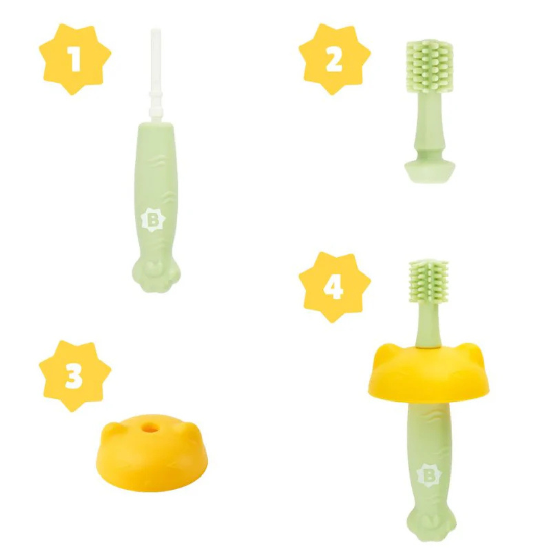 Evolutiva si adaptabila: include 3 capete diferite (6luni+, 12-18luni+, 18luni+) care se adapteaza fiecarei etape ale dentitiei, de la primul dintisor pana la intreaga dantura.