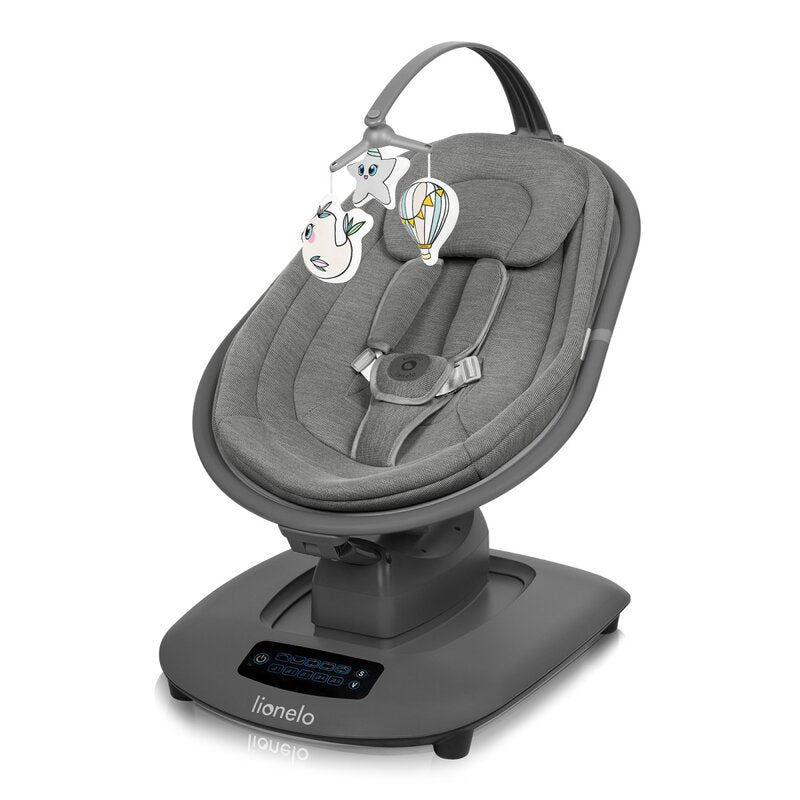 Balansoar si sezlong, Lionelo, Blossom, 5 melodii, 5 moduri de balansare, Cu jucarii, Husa respirabila, 60% bambus, Cu telecomanda, Reglare pozitie scaun pentru somn, Pana la 9 kg, Gri