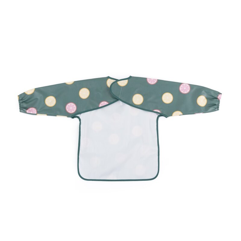 Baveta impermeabila, Petite&Mars, Cu maneci lungi, Usor de curatat, inchidere prin velcro, Dimensiune 38x42 cm, 24 luni+, Beige Citrus