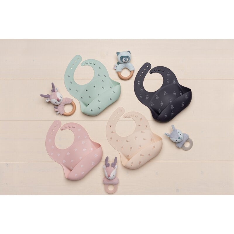 Baveta moale, Petite&Mars, Sam, Din silicon, Cu rezervor, Fara BPA, PVC si Ftalati, Dealuri Gri