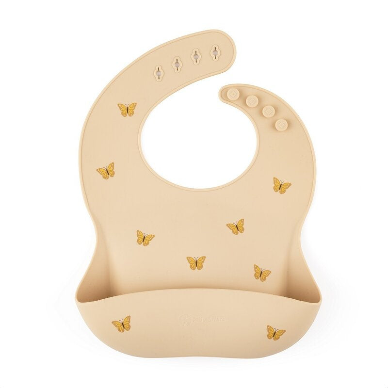 Baveta moale, Petite&Mars, Take&Match, Reglabil, Cu buzunar colector, Silicon, Fara BPA, 6 luni+, Model fluturasi, Bej