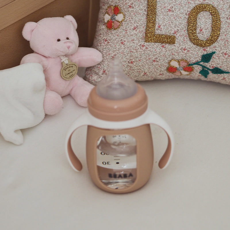 Biberon de invatare 2 in 1 din Sticla Beaba 210 ml Old Pink