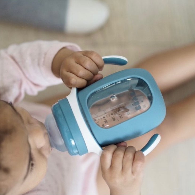 Caracteristici Biberon de invatare 2 in 1 din Sticla Beaba 210 ml Windy Blue: