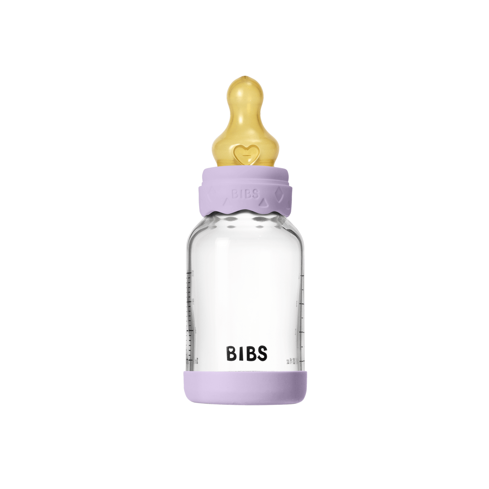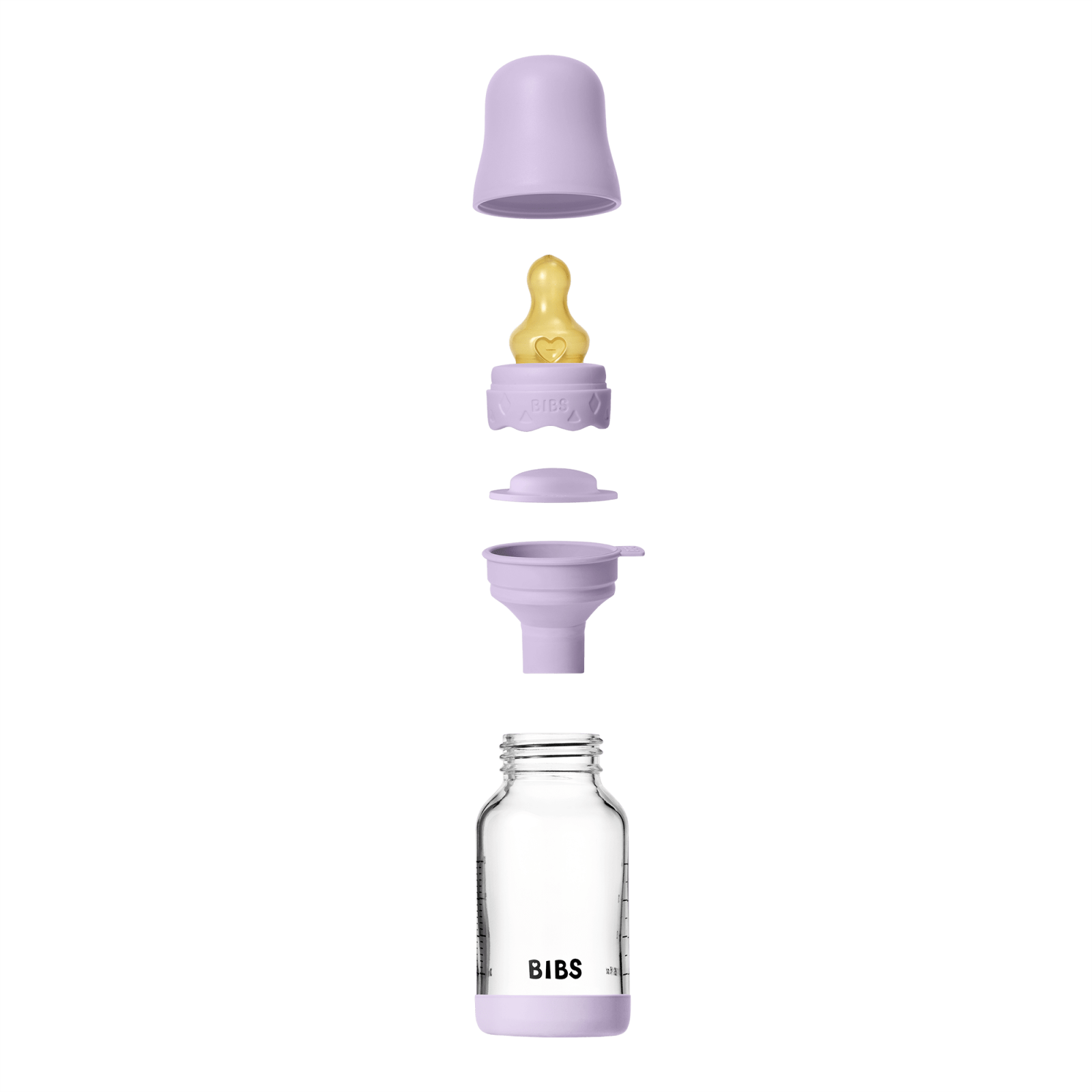 BIBS - Set complet biberon Boheme din sticla anticolici cu tetina din latex, flux lent, 120 ml, Violet Sky