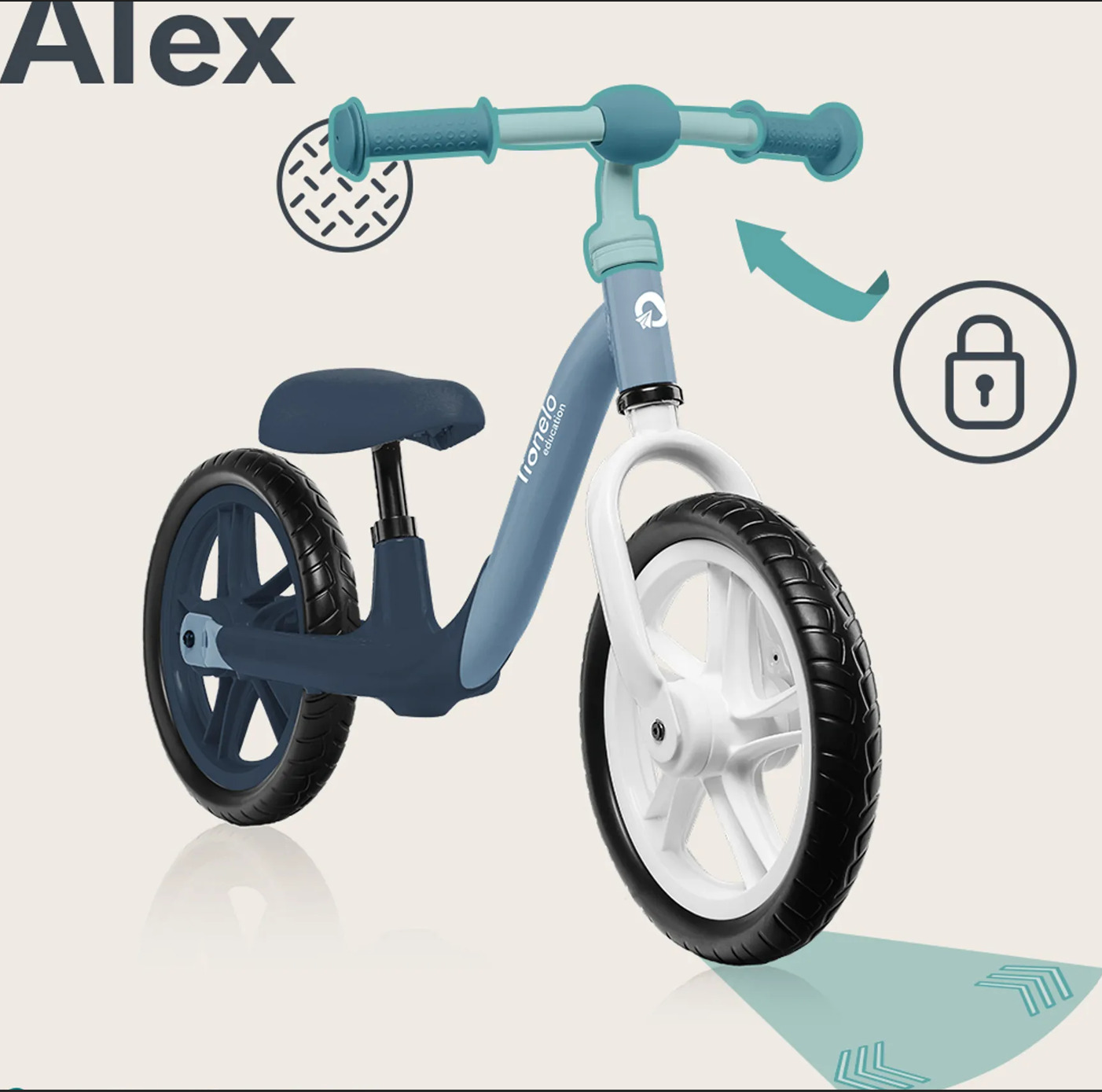 Bicicleta de echilibru Lionelo Alex este ideală pentru copiii de la 3 ani care își dezvoltă abilitățile motorii. Prin folosirea ei, cei mici învață natural să își mențină echilibrul, facilitând trecerea ulterioară la o bicicletă cu pedale.