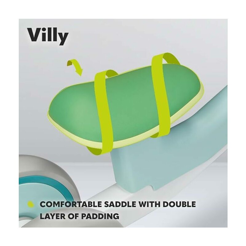 ✔️ Confort in timpul orelor lungi de distractie? Da! Bicicleta Villy are un scaun confortabil cu un strat dublu de umplutura , datorita caruia bebelusul va putea sa stea confortabil in timp ce calatoreste prin lume. Manerele ghidonului sunt moi si anti-alunecare.