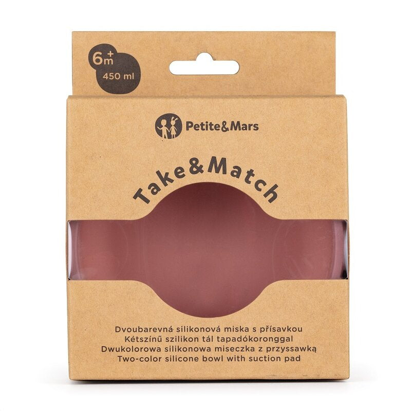Bol, Petite&Mars, Take&Match, Cu ventuza, Silicon, Fara BPA, 450 ml, 6 luni+, Roz