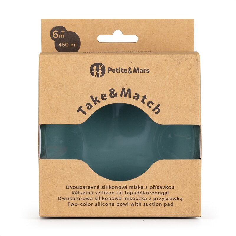 Bol, Petite&Mars, Take&Match, Cu ventuza, Silicon, Fara BPA, 450 ml, 6 luni+, Verde