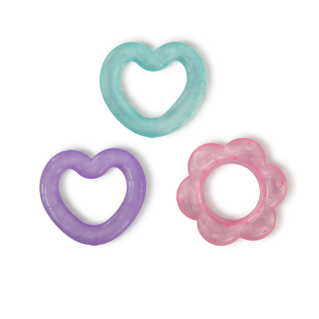 Din cele șase jucării de dentiție, patru sunt refrigerabile și umplute cu apă purificată.