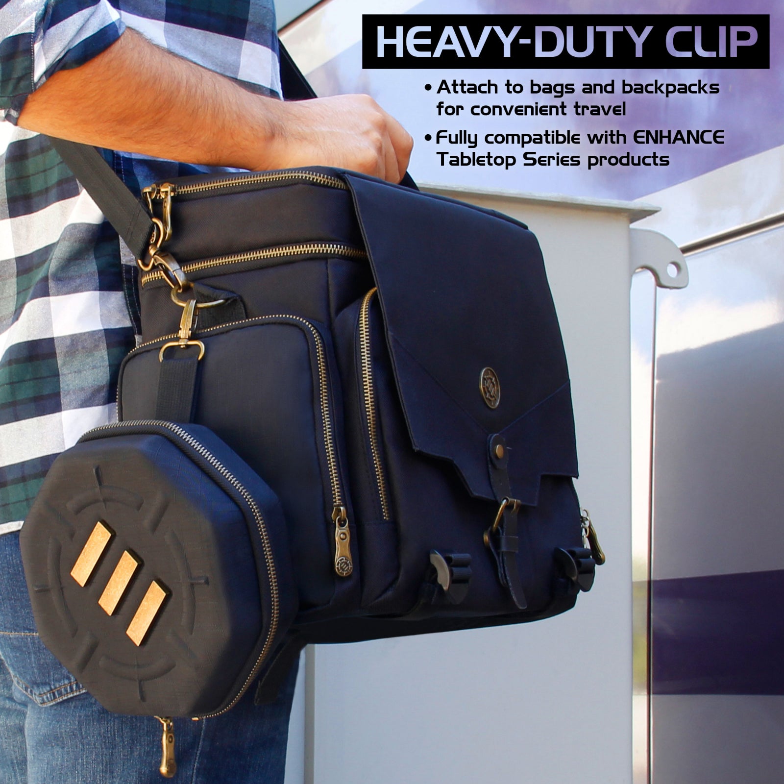 Zarurile tale metalice si seturile de colectie de zaruri vor gasi o noua casa in Seiful de Depozitare a Zaruruilor ENHANCE. Carcasa are si o carabiniera metalica pentru atasarea la rucsacuri si genti, complet compatibil cu GEANTA DE AVENTURA ENHANCE, GEANTA DE TRANSPORT PENTRU MINIATURI ENHANCE si GEANTA DE TRANSPORT PENTRU CARTI DE JOC MTG ENHANCE. Carcasa noastra pentru zaruri este ideala pentru Dungeons and Dragons, jocuri de societate si diverse alte jocuri tabletop si RPG-uri, precum Pathfinder, Runquest, GURPS, Savage Worlds si multe altele. Inlocuieste pungile mici de zaruri DnD si tavile voluminoase de zaruri cu CARCASA PENTRU ZARURI DND ANCIENT BRONZE!
