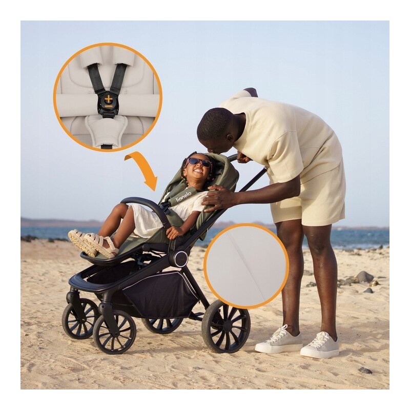 Carucior 2 in 1, Lionelo, Mika Plus, Cadru din aluminiu, Cu landou intarit si salteluta moale, Reversibil, Cu sistem de ventilatie 3D, Cu accesorii, Pana la 22 kg, Conform cu EN1888-1 EN1888-2, EN1466, Bej