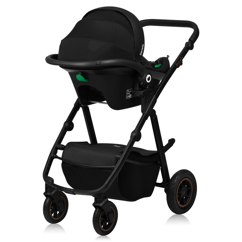 Carucior 3 in 1, Lionelo, Amber Plus, Cadru aluminiu, Cu landou intarit si salteluta moale, Cu scoica auto testata ADAC, Reversibil, Maner ajustabil, Cu accesorii, Cu ventilatie panoramica 3D, Pana la 22 kg, EN1888-1, EN1888-2, EN1466, ECE R129, Verde