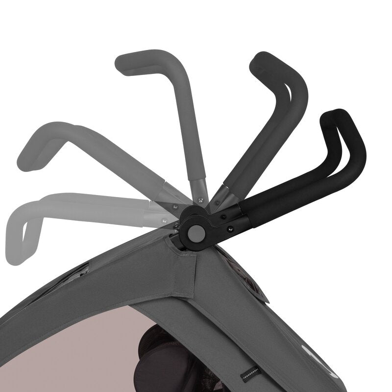 Faciliteaza transportul lucrurilor esentiale. Latimea optima a remorcii - 80 cm - face ca produsul sa se potriveasca usor in pasajele standard in timpul plimbarilor de zi cu zi. Confortul in timpul mersului este asigurat de manerul reglabil.