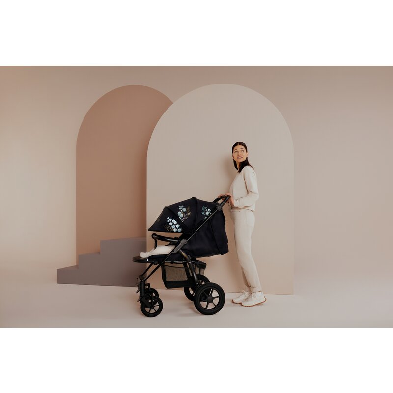 Lionelo Annet Tour Golden Moments este un carucior dedicat copiilor cu varste cuprinse intre 0-48 luni, astfel incat poate fi folosit atat ca primul, cat si ca singurul carucior care va rezista pe toata perioada utilizarii caruciorului. Rotile mari, fara intretinere, pot face fata chiar si terenului dificil, iar absorbtia confortabila a socurilor asigura confort pentru copil si parinte, depasind in acelasi timp orice denivelare. Reductorul asigura pozitionarea corecta din punct de vedere anatomic a celor mai mici copii si protejeaza tapiteria caruciorului de murdarie. Pe de alta parte, scaunul lat cu reglare a spatarului in mai multe etape ofera o pozitie ergonomica pentru copiii mai mari. Copertina XXL impermeabila cu protectie UPF 50+ protejeaza bebelusul de soare, ploaie sau vant, izolandu-l in acelasi timp de excesul de stimuli. Modelul floral original prezent pe baldachin si insertia sunt o combinatie subtila de ramuri de eucalipt cu decoratiuni aurii, din colectia Golden Moments.