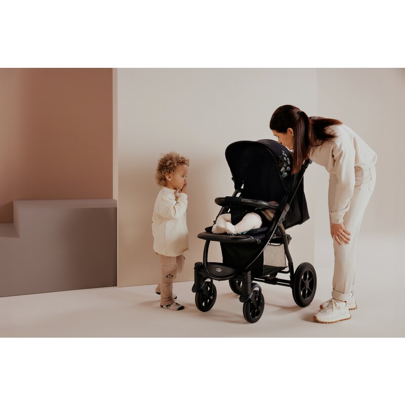 Ca raspuns la nevoile parintilor, am creat un carucior pe roti mari, off-road, pe care nu trebuie sa le pompati. Datorita lor, puteti iesi cu incredere de pe traseele principale pentru a explora lumea impreuna cu copilul dumneavoastra. Absorbtia socurilor pe 4 roti va va garanta un confort deplin - va facilita depasirea obstacolelor si reducerea socurilor. In plus, puteti bloca rotile din fata pentru a stabiliza caruciorul pe umflaturi. Cand stationati, fixati-l cu frana de picior amplasata central.