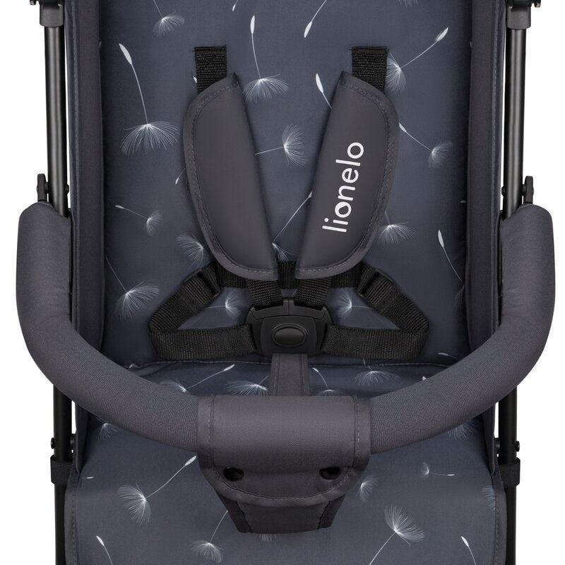 Caruciorul vine cu un parasolar incapator cu fereastra integrata, precum si o reglare convenabila pentru spatar si suport pentru picioare. Centurile de siguranta in 5 puncte cu acoperire si un arc moale din spuma asigura copilul impotriva caderii. Lionelo Elia este livrat cu un set de accesorii, precum cos incapator, plasa de tantari.