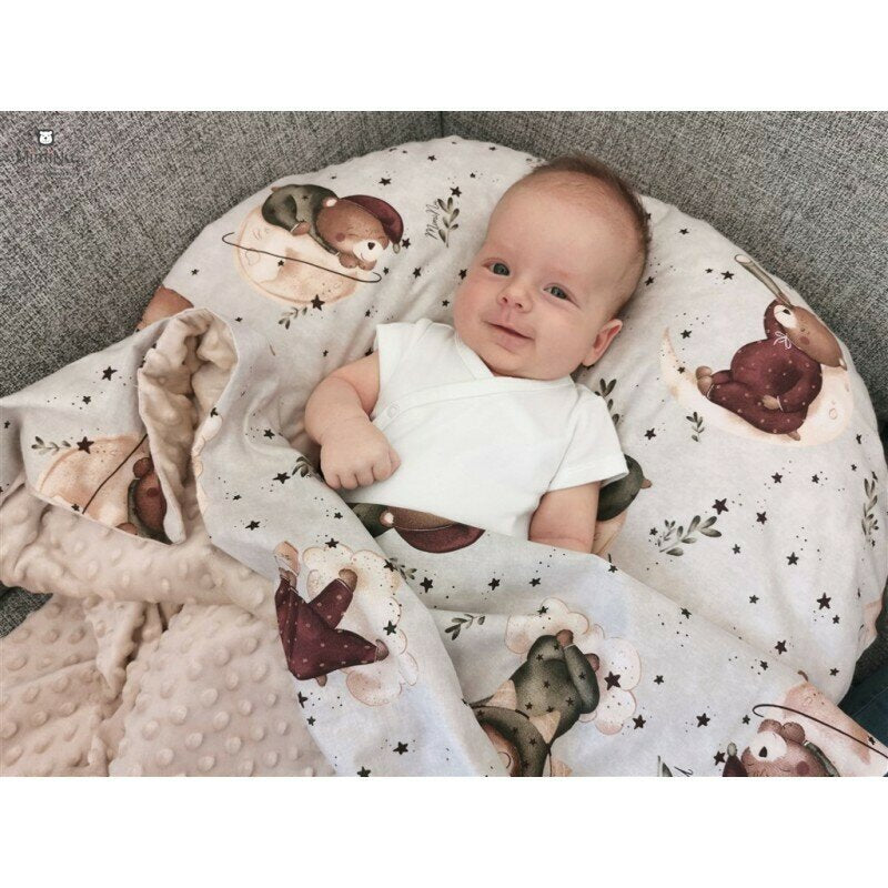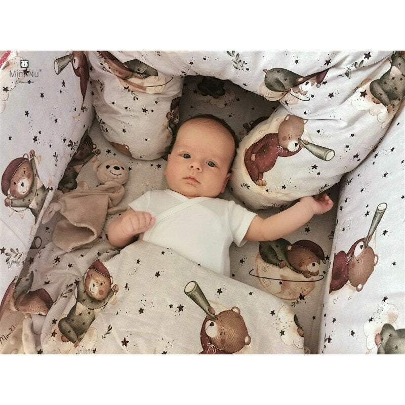 Cearceaf cu elastic, MimiNu, Pentru patut co-sleeper, Vera, Dimensiune 89 x 51 cm, Din bumbac certificat Oeko Tex Standard 100, Teddy Bear On Moon