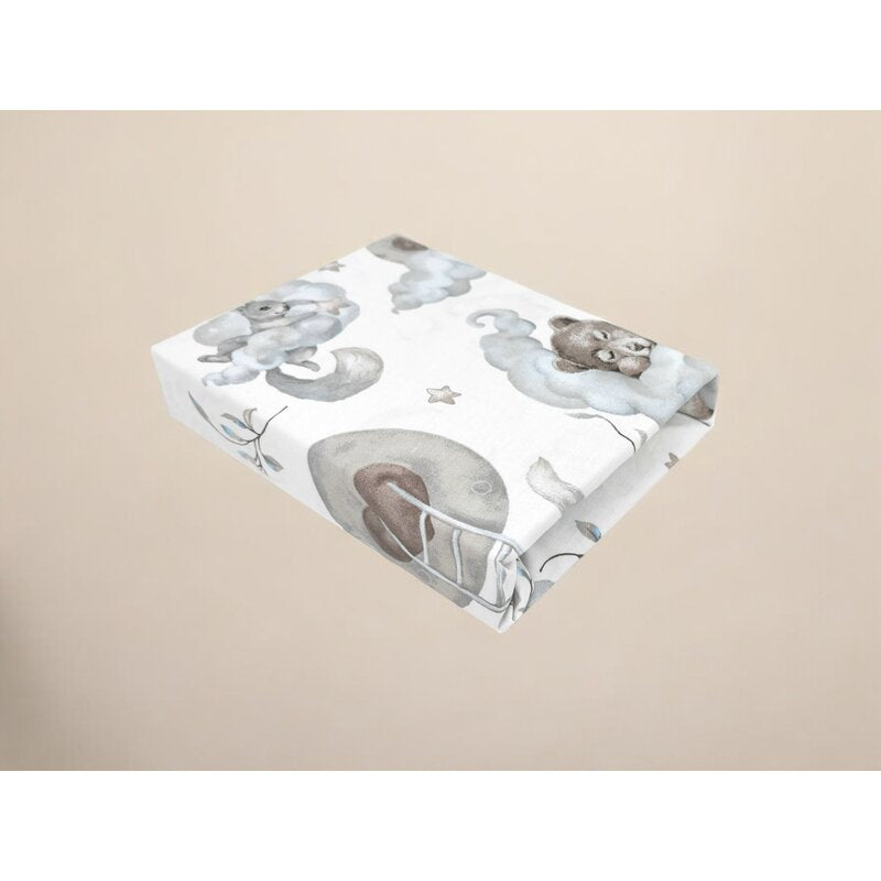 ❤️Cearceaf cu elastic – Qmini | Pentru patut co-sleeper Aurora | Colectia Teddy Bear and Friends Blue