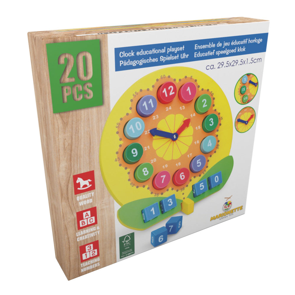 Ceas din lemn analogic si digital Marionette 20 piese ,€“ invata prin joaca.