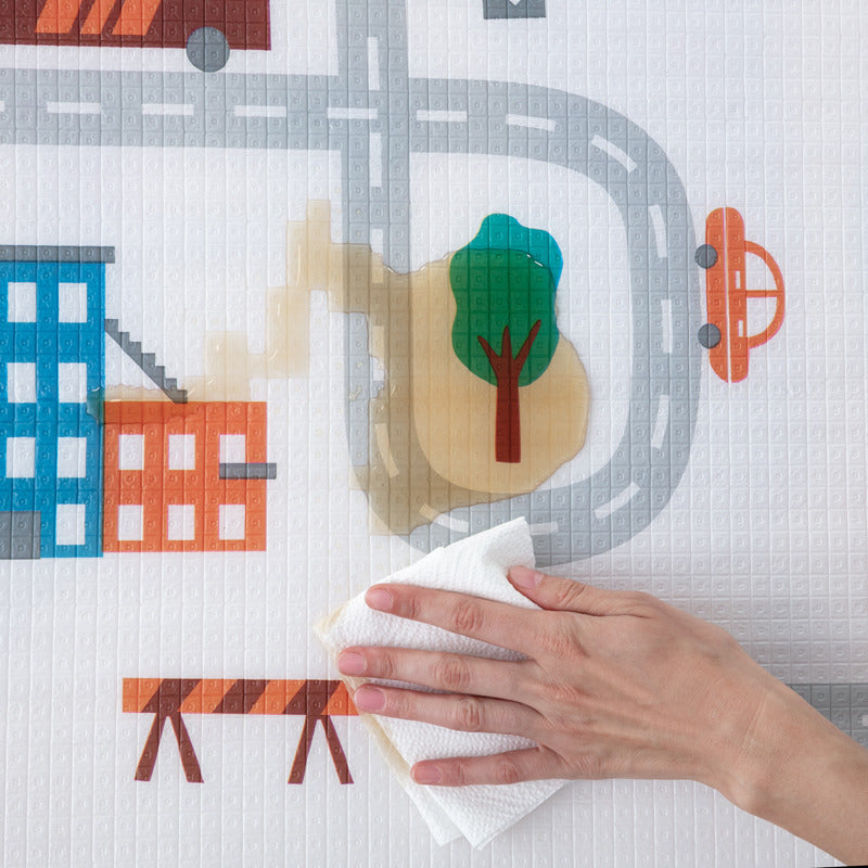 - Covorasul moale si impermeabil va mentine copilul in siguranta in timp ce se joaca sau se taraste.