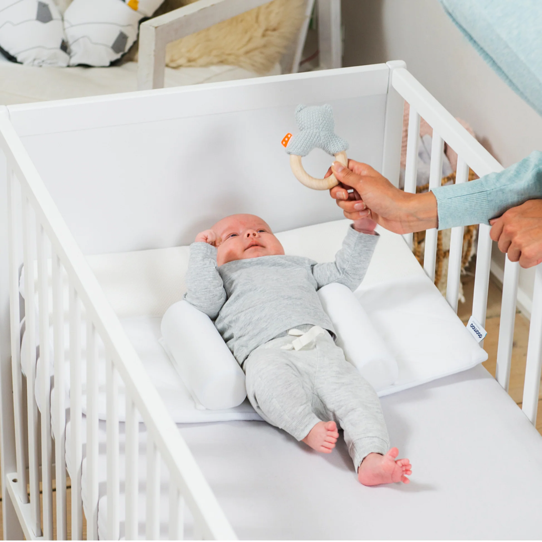 Pozitionatorul pentru spate Doomoo Supreme Sleep permite asezarea confortabila a bebelusului pe spate prevenind riscul de plagiocefalie (cap plat) asociat cu aceasta pozitie.