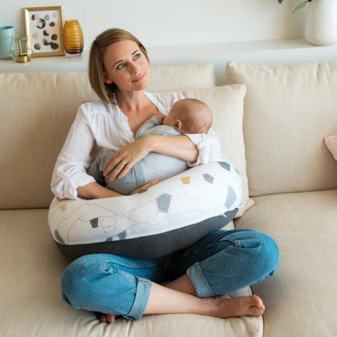 Sprijin in timpul sarcinii, pentru alaptarea la san sau cu biberonul si o perna pentru ca bebelusul sa se joace si sa se odihneasca.