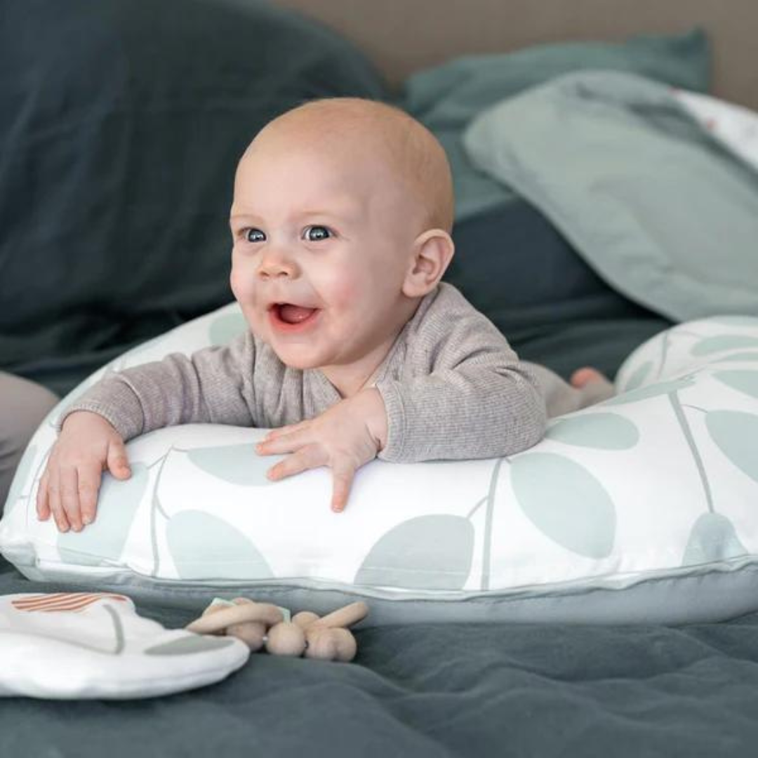 Doomoo Softy este o perna multifunctionala, oferind sprijin in timpul alaptarii la san sau cu biberonul, transformandu-se apoi intr-o perna confortabila pentru ca bebelusul sa se joace si sa se odihneasca.