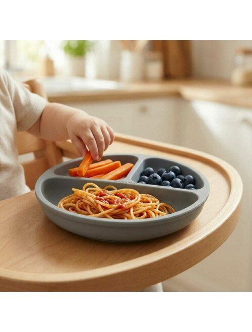 Farfurie Compartimentată Bocioland Silicon 3 Compartimente Ventuze BPA Free 6-36 Luni Dark Grey