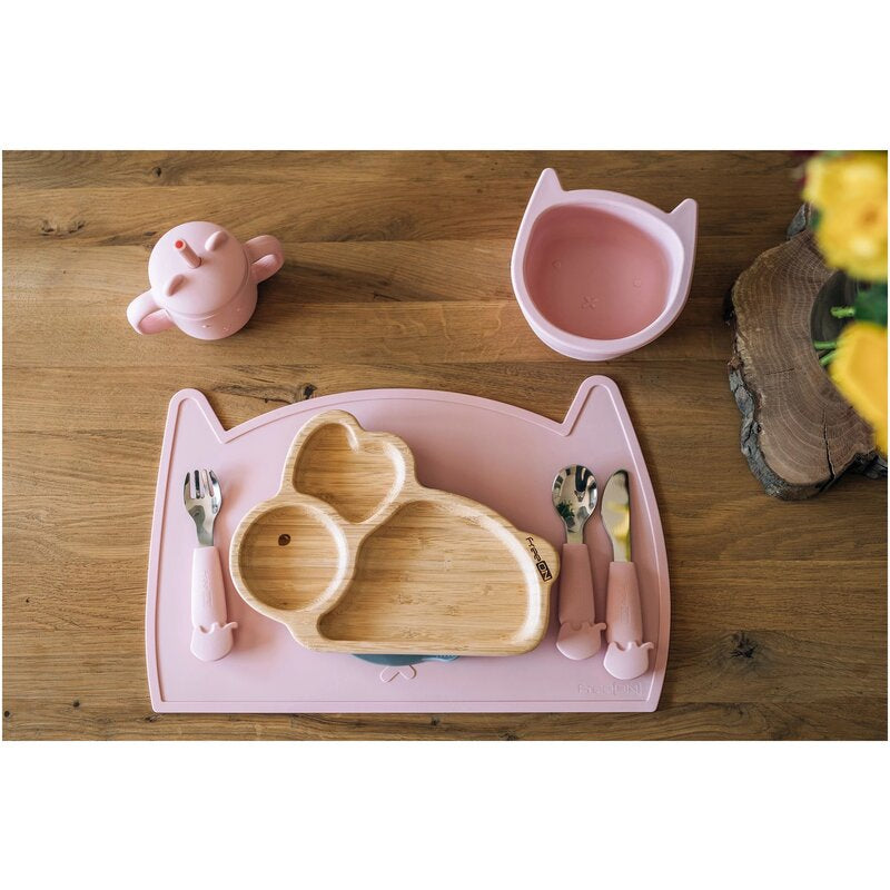 Farfurie compartimentata, FreeON, Din bambus, Cu ventuza, Conform cu standardul european de securitate EN 14372:2004, Bunny