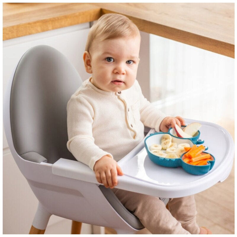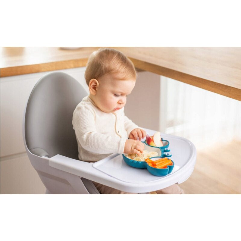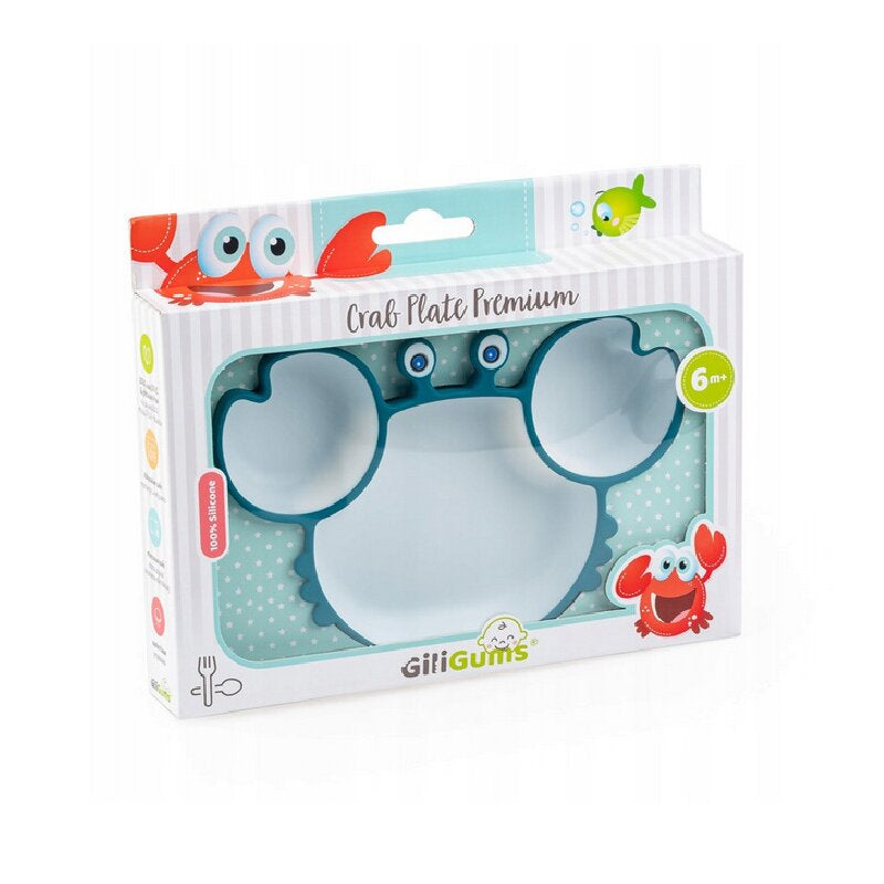 Farfurie, Giligums, Crab Premium, Compartimentata, Cu ventuza, Din silicon, Fara BPA, 6 luni+, Alb/Turcoaz