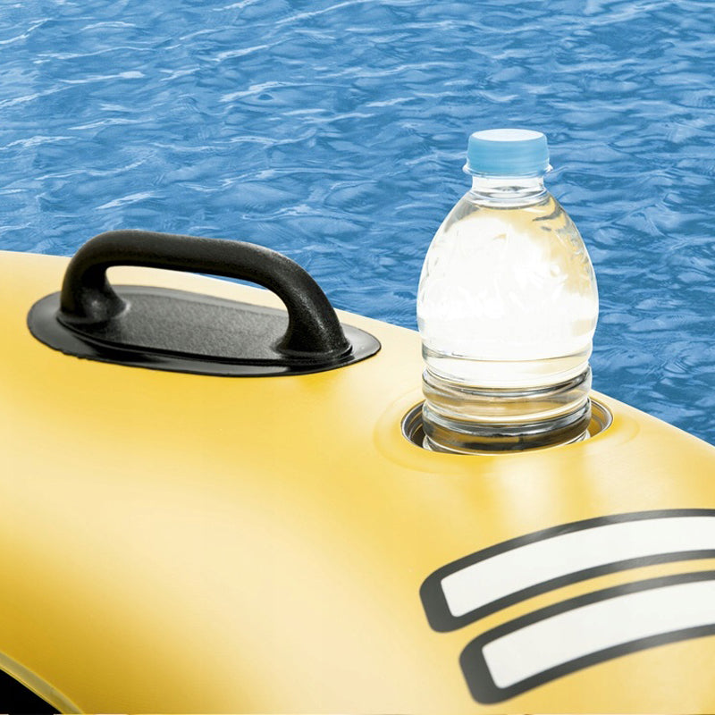 Fie ca plutesti in piscina sau pe mare, Fotoliul gonflabil dublu Rapid Rider Bestway este intotdeauna distractiv pentru doi. Va puteti bucura de o bautura racoritoare in timp ce plutiti, avand inclusa o geanta termoizolanta ce va pastreaza bauturile reci. Puneti bautura in suportul personal, apoi va asezati confortabil pe perna integrata.