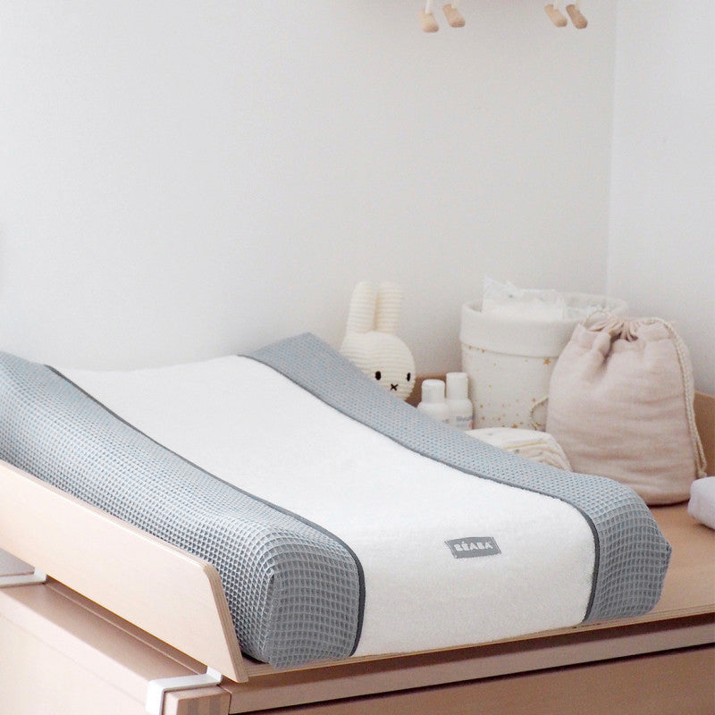Aceasta husa speciala se potriveste perfect Saltelutei de infasat Sofalange de la Beaba, este moale si confortabila pentru bebelus.