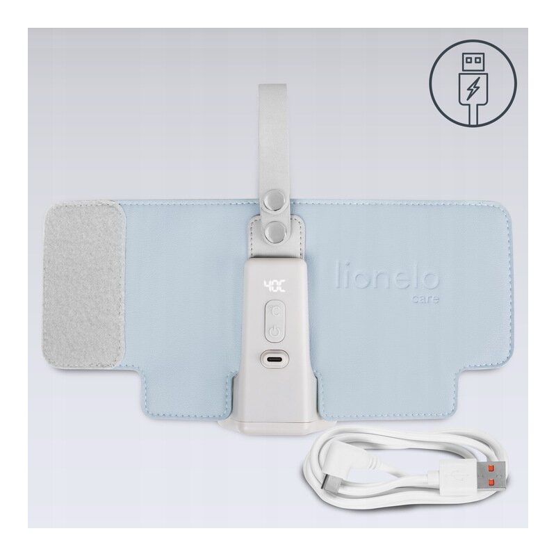 Incalzitor biberoane, Lionelo, ThermUp Go Plus, Portabil, Cu aspect elegant, Temperatura constanta pana la 24 h, Incarcare USB, Albastru deschis