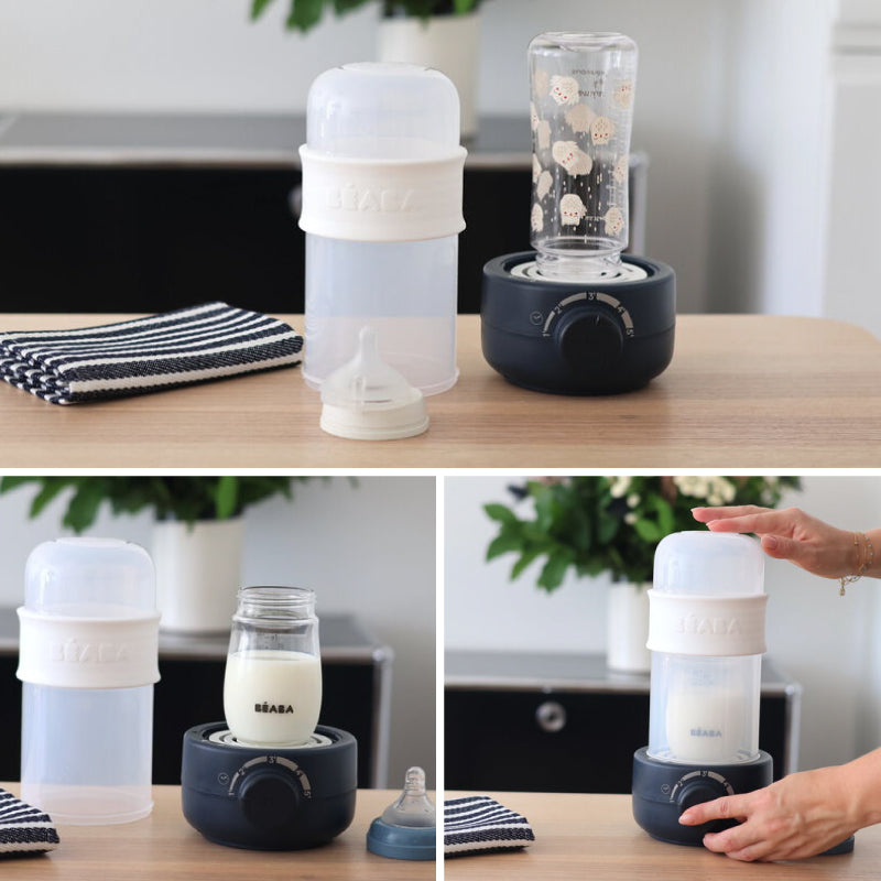 Evolutiv: incalzitor de biberoane (apa, lapte matern, lapte de continuare) si recipiente mici.