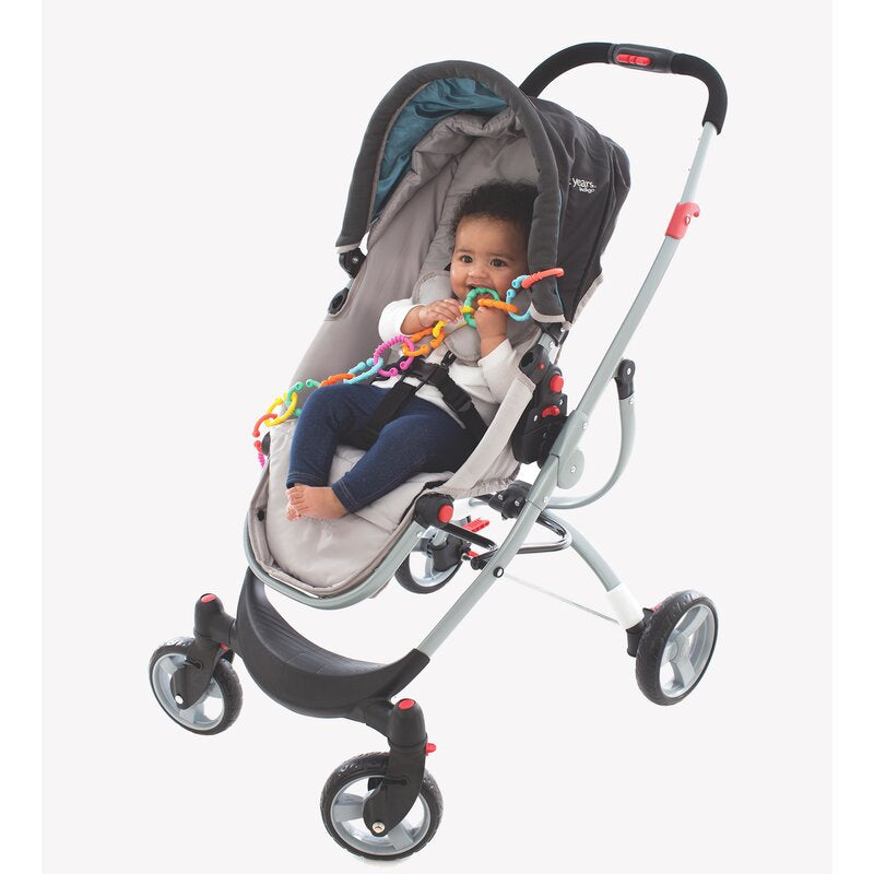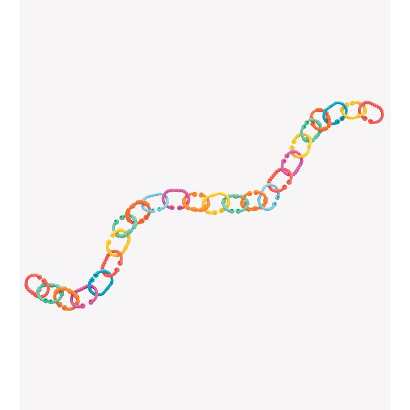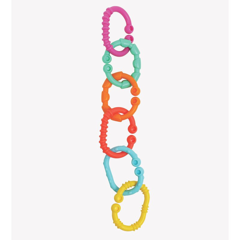 Playgro Loopy Links sunt inele colorate si texturate, perfecte pentru calmarea durerilor gingivale si pentru conectarea jucariilor preferate la carucior, scoica auto sau patut.