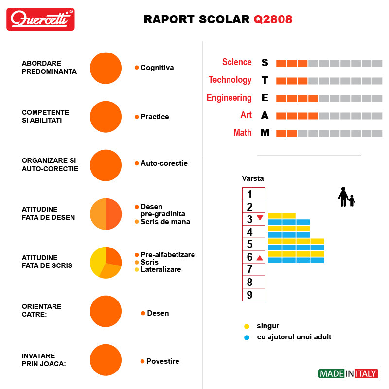 60 de ani de experienta Quercetti. Toate jucariile Quercetti sunt facute pentru a stimula creativitatea si intuitia copiilor prin joaca. Creativitatea este un element esential pentru a spori dezvoltarea sanatoasa, iar prin jucariile Quercetti, copiii dezvolta noi abilitati fizice si mentale si de asemenea invata sa rezolve probleme. Cu Quercetti, copiii se joaca inteligent!