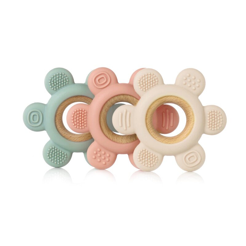 Fiecare parte a jucariei ofera o senzatie unica la muscatura, incurajand stimularea senzoriala si oferind o experienta de calmare variata pentru gingii.