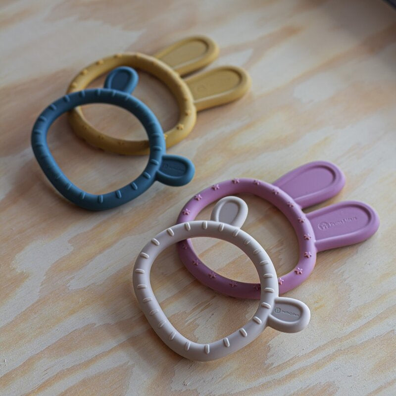 - Ajuta la ameliorarea durerii care apare in timpul procesului de dentitie, deoarece gingiile sunt masate usor in timp ce musca din jucarie.