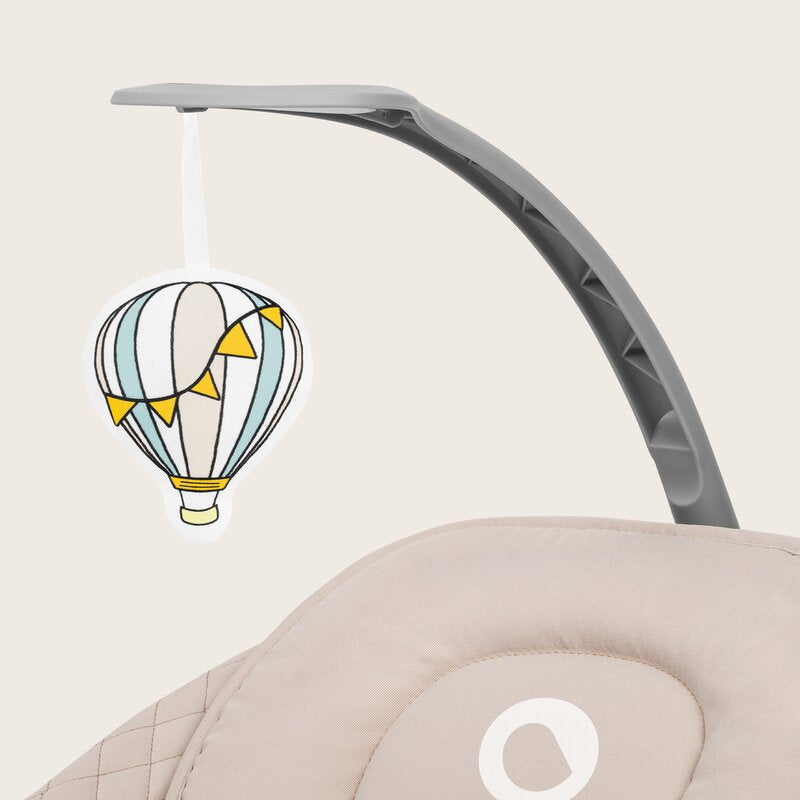Leaganul este echipat cu 8 melodii inclusiv sunete din natura care ajuta la calmarea bebelusului. Bara de jucarii reglabila atrage atentia bebelusului, incurajandu-l sa-si intinda bratele. Bara de jucarii poate fi si ea demontata, daca este necesar.