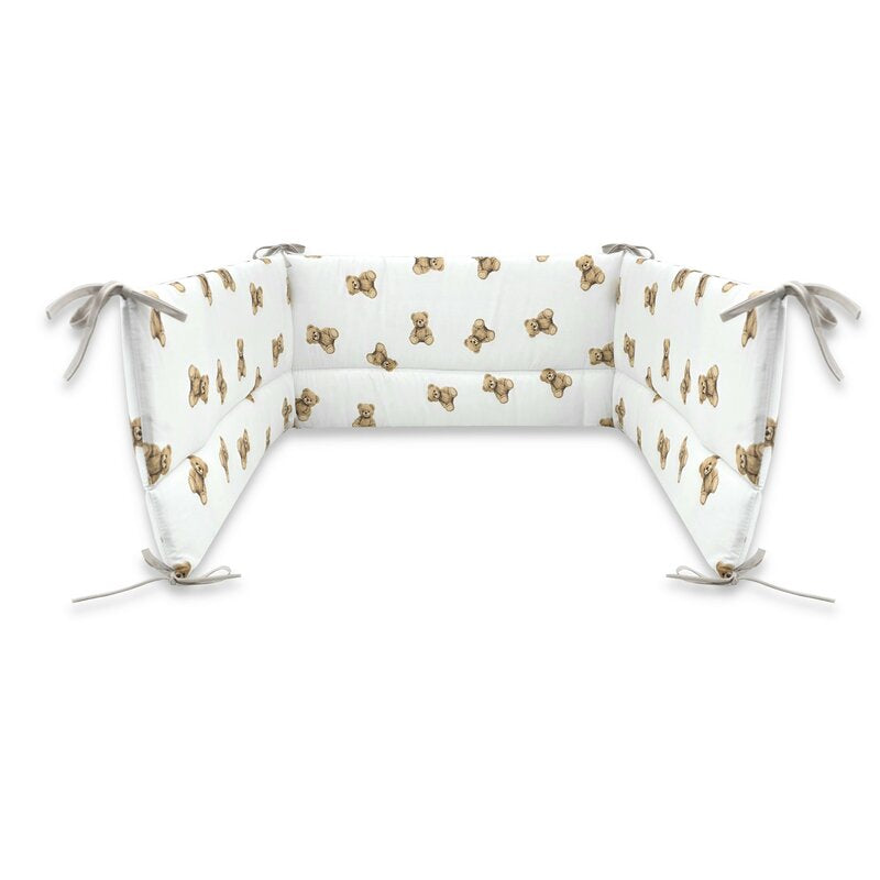 Lenjerie patut 3 piese, Qmini, Pentru patut 120x60 cm, Cu protectie laterala, Din bumbac certificat Oeko Tex Standard 100, Teddy Toys