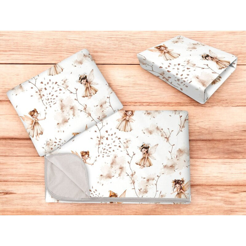 Lenjerie patut cu 3 piese, MimiNu, Cu cearceaf 120x60 cm, Din bumbac certificat Oeko Tex Standard 100, Cu paturica si pernuta, Fairy