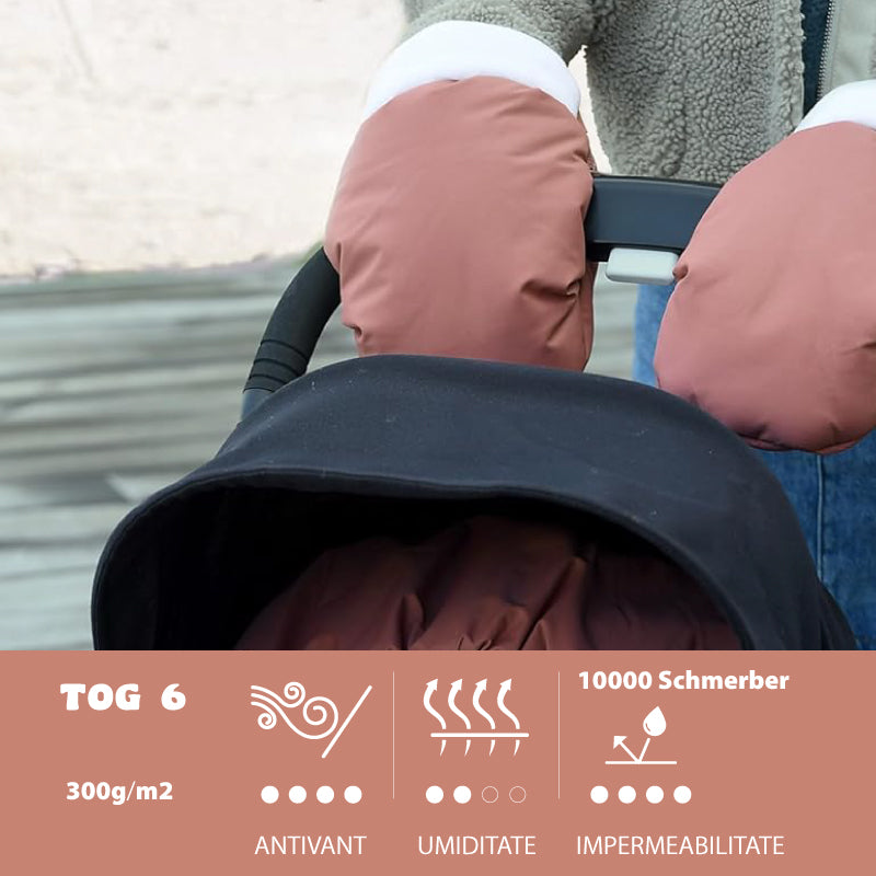 Manusi pentru carucior Beaba Heather Terracotta ,€“ impermeabile si captusite cu polar, ofera caldura si protectie maxima pentru vremea rece.