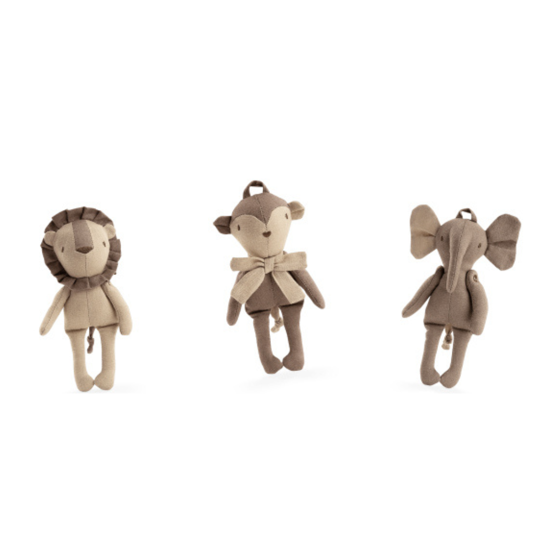 Contine 3 jucarii adorabile, perfecte pentru stimuarea simturilor: elefantel, leu, maimutica