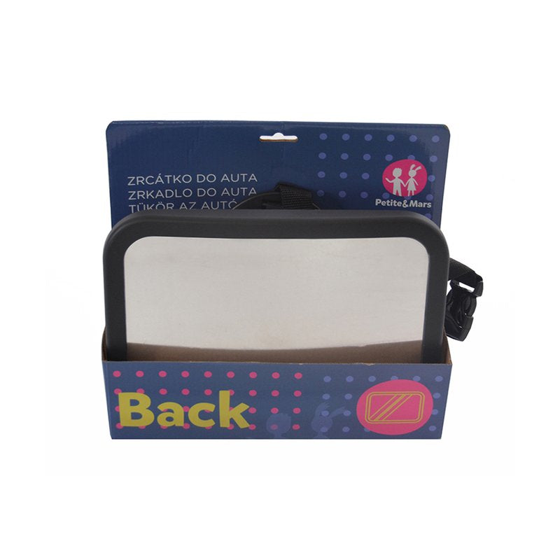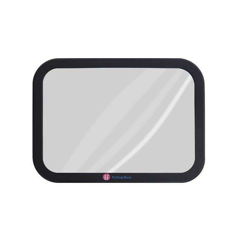 Oglinda auto retrovizoare, Petite&Mars, Rotativa 360, Montare pe tetiera cu ajutorul curelelor, 26.5 x 20, Negru
